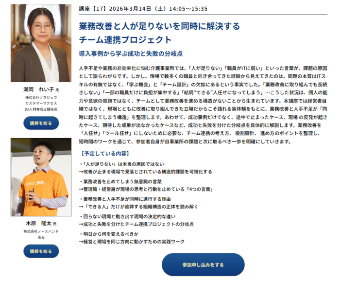 [セミナー情報]次世代介護マネジメントフォーラム2026 in 大阪 登壇のお知らせ ―(株)ソラジョウ、(株)ノースハンド